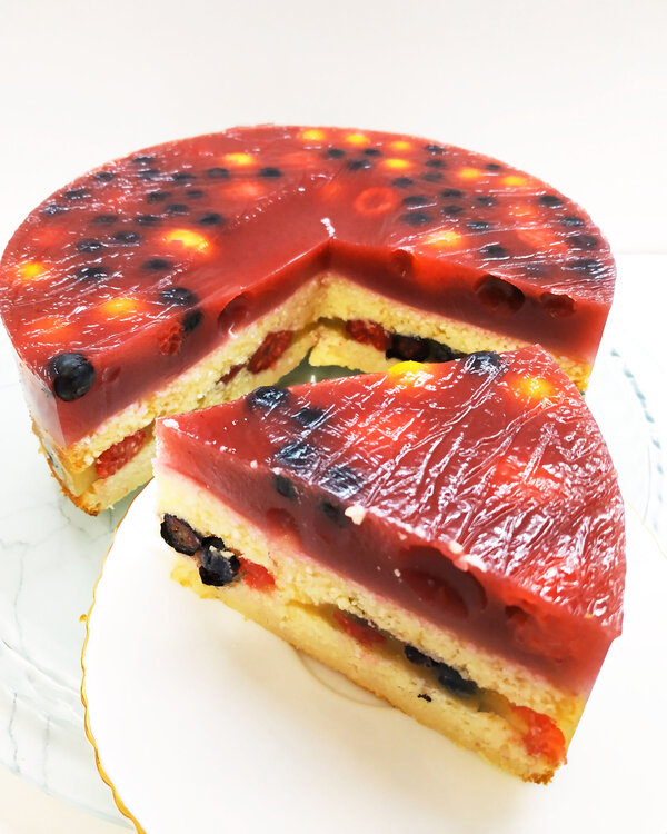 Тут можно экспериментировать, в середину можно вообще не укладывать корж, а сделать только один внизу. Вместо агара можно использовать желатин. Украшать любыми фруктами и ягодами!