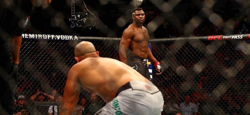 На турнире UFC on ESPN 3, проходившем в Миннеаполисе, Фрэнсис Нганну в первом раунде нокаутировал бразильца Джуниора Дос Сантоса. В конце первой минуты боя камерунец провалил соперника, затем реализовал правый боковой. Сантос свалился на настил, где Нганну его тут же добил. Поединок завершился победой Фрэнсиса техническим нокаутом на 72-й секунде. После боя Нганну заявил о своих амбициях на поединок за титул чемпиона: Напомним, RuFight.com давал прогноз на данную схватку (победа Фрэнсиса Нганну нокаутом в первом раунде).
