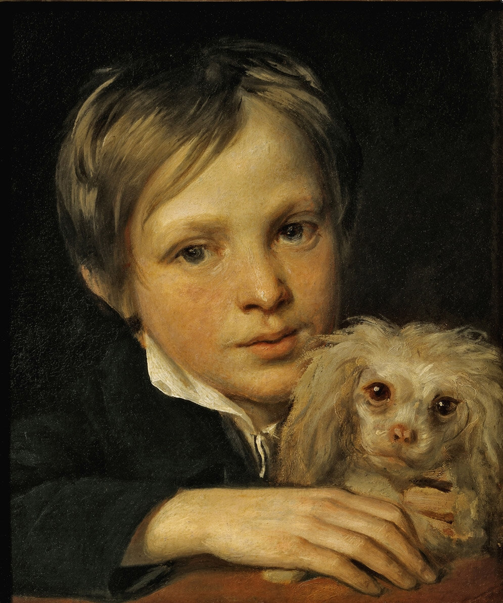 Второй раз посетила Третьяковскую галерею. И если в первый раз мне светили известные картины знакомых с детства сюжетов, к которым я подходила с замиранием сердца, на против которых сидела и смотрела по полчаса, вслушиваясь в рассказ аудиогида, то в этот раз маленькая картина «Мальчик с болонкой» случайно попавшаяся в поле зрение стала картиной моего второго похода в Третьяковку. Как автор передал чистые взаимоотношения - детскую привязанность и преданность собачки, как они верят друг другу, как им спокойно вместе. Мальчик обнимает собачку, почесывая ей грудку. А тёплая собачка своей мягкой шерсткой касается его щечки.