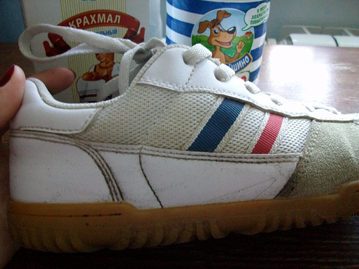 У моей подруги есть белые кроссовки, которые она носит уже 3 года. Они выглядят как новые. Я была уверена, что она использует дорогостоящее средство по уходу за кроссовками, но нет, все оказалось совсем иначе. Она поделилась со мной дешевым способом по очищению белой обуви от загрязнения. Если честно, я не очень доверяю подобным народным рецептам, но все же решилась попробовать. Что нам понадобится: Берем чашку, добавляем туда 1 столовую ложку картофельного крахмала и 1 столовую ложку обычного молока. Все тщательно перемешиваем, должна получиться жидкая паста. Теперь берем обувь, у меня это кроссовки с белыми вставками, и наносим пасту на загрязненные места. Затем я взяла кусочек марли, смочила его в теплой воде и начала растирать пасту. Потом сполоснула марлю и вытерла остатки пасты с кроссовка. Какой результат? Если честно, я удивлена. Результат действительно налицо. Фото до Фото после Кроссовки стали гораздо чище, белые вставки буквально светятся от белизны. Этот лайфхак опре