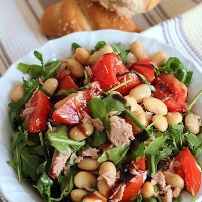 Этот салат я пробовал в многих вариантах. И создал, на мой взгляд, лучшую его интрепритацию. Этот вариант считаю самым сбалансированым. Пробуйте, делитесь мнением. Сейчас самое время для его приготовления, сезон молодого щавеля, спелых грунтовых томатов, сочного сладкого лука. Ингридиенты 240 грамм консервированной фасоли в собственном соку (одна банка) 130 грамм консервированного тунца в собственном соку или в масле(одна банка) 150 грамм спелых помидор 50 грамм сладкого красного лука 50 грамм масло растительное ( лучше оливковое) 50 грамм лимон (выдавить сок) Инструкции Фасоль промыть и дать стечь. В большую миску выложить тунца вместе с жидкостью. Разьмять его вилкой. Щавель промыть, перебрать, удалить плодоножку, обсушить добавить к тунцу. Добавить фасоль, нарезаные дольками помидоры и нарезаный тонкой соломкой лук. Масло смешать с лимонным соком и заправить салат. Добавить соль, перец по вкусу. Все аккуратно перемешать и подавать к столу. Совет Регулируйте кислоту по вкусу