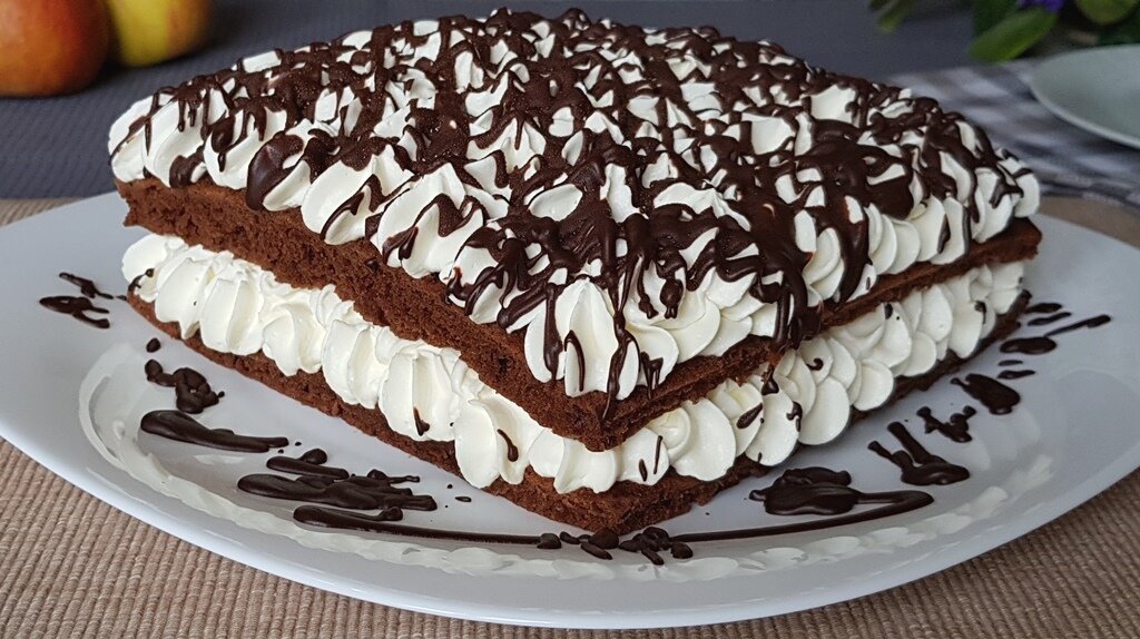 Шоколадный торт без раскатки коржей, готовится очень быстро из простых и легко – доступных продуктов! Торт очень нежный, воздушный, тающий во рту! Этот простой домашний торт, отлично может украсить и Праздничный стол! Пошаговый видео рецепт Вы можете посмотреть в моем видео ниже СПОСОБ ПРИГОТОВЛЕНИЯ Сначала заварим крепкий, сладкий кофе. И оставить его остывать. Для пропитки нам понадобится холодный кофе. Далее приготовим крем Для приготовления крема нам понадобится 350 грамм мягкого творога, берите любой который вы любите, я использую творог, приготовленный из кефира. Творог при желании можно заменить сливочным сыром 350 грамм сметаны жирностью не менее 20%. У меня 20%. Если у вас очень густая и жирная сметана, то вы можете брать сливочного масла меньше, чем указано у меня в рецепте. 120 грамм сливочного масла 115 грамм сахарной пудры. Вместо сахарной пудры можно брать сахар, но он будет дольше растворяться в масле. 15 грамм ванильного сахара Творог соединяем со сметаной и перемеш