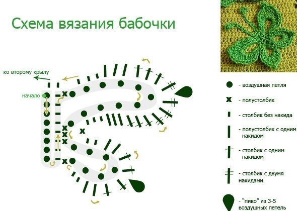 Бабочки — чудо природы! Такие они прекрасные! Природа создала их нам на радость, мы же украшаем ими всё, что можно: жилище, головные уборы, платья, сарафаны, да, в общем, всё, что хочется украсить. Предлагаю Вашему вниманию схемы вязания бабочек крючком. Начать вязание можно, посмотрев видео Кристины Богдановой. Очень понятно рассказывает, всё получается с первого раза! Проверено! Можно вязать бабочки в виде цветочка. Эти два видео МК есть на сайте https://vyazanie.info/ Понравилось?! Теперь уже можно вязать по схемам, затем начать придумывать своих изумительных красавиц! Как связать бабочку крючком. Есть много схем, Вы можете их варьировать, изобретать свою. Но сначала, всё же, рекомендую точно придерживаться схем. Маленькие бабочки со схемами. Топ «бабочка». Здесь, конечно, тонкая пряжа не подойдёт. Тут нужно подобрать крючок и нитки так, чтобы бабочка получилась в ширину на нужный размер топа. Интересная красивая салфетка. Если Вам понравилась статья, ставьте класс и подписывай