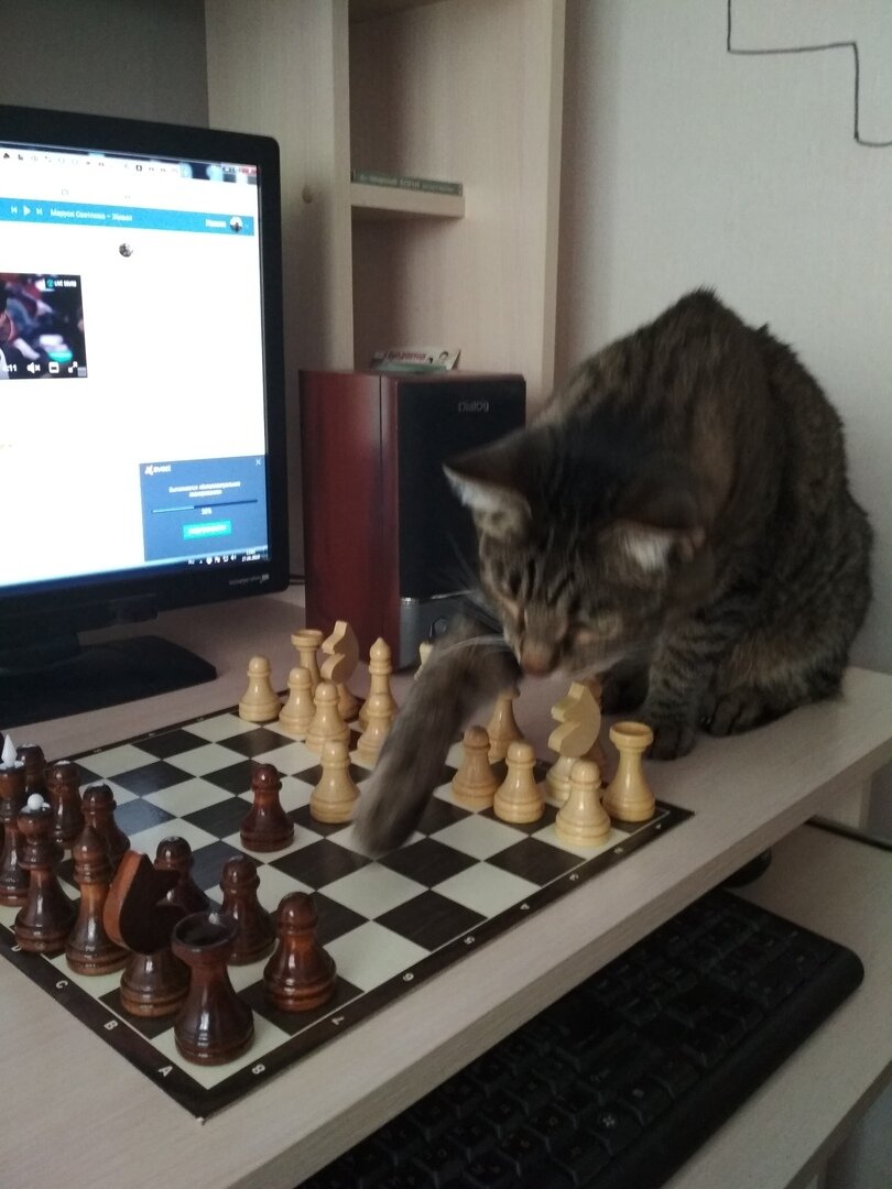 Верный дебют разыграл я сполна, Разберу детально партию Кота: Эндшпиль сыграл,все прошло как по нотам, Где же ошибка? Найти ее- забота Кот Шанс(породы хатуль мадан)