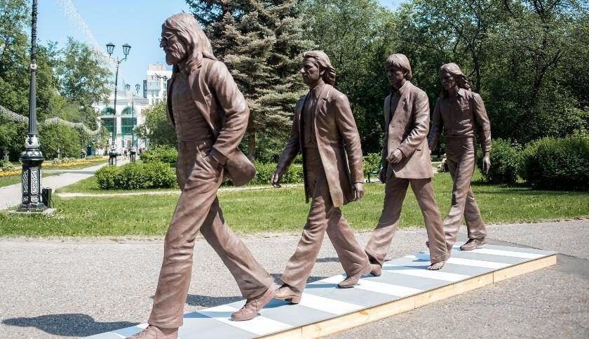 Один из самых интересных и "живых" памятников находится в Томске — скульптурная композиция музыкантов в полный рост повторяет обложку альбома битлов "Abbey Road". Только идут они не по дорожной зебре, а направляются ко входу в Томский университет.