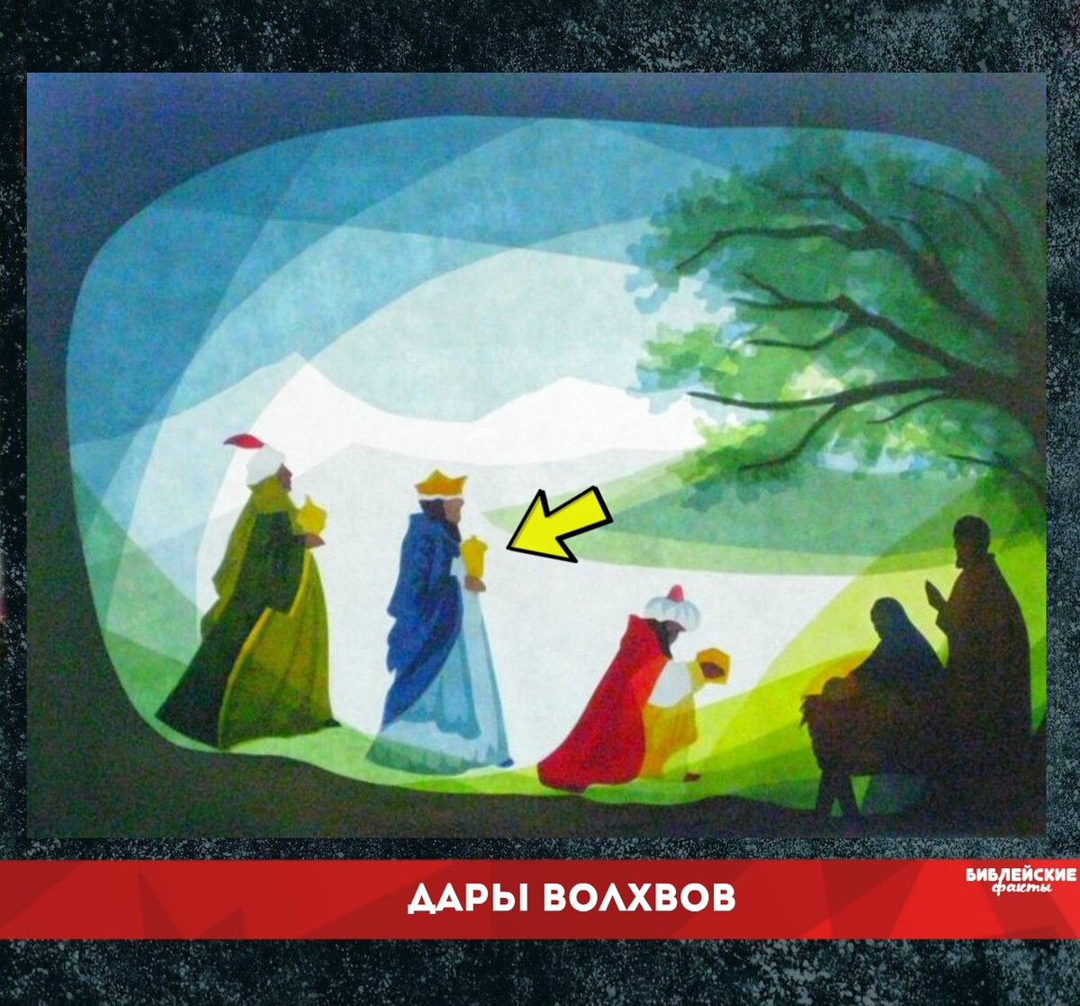 Одним из самых известных библейских сюжетов является поклонение волхвов, которые, увидев Вифлеемскую звезду, пришли к месту рождения Иисуса и поднесли ему дары — золото, ладан и смирну. ____________________ ► Золото указывало, что Иисусу суждено стать Царём. ► Ладан дар первосвященнику, так как Иисус пришёл стать новым Учителем («наречен от Бога Первосвященником по чину Мелхиседека» (Евр.5:10). Еще ладан употребляется при Богослужении. ► Смирна говорила о грядущей смерти на кресте. Смирна использовалась для погребальных пелен Господа. ____________________ «После сего Иосиф из Аримафеи – ученик Иисуса, но тайный, из страха от Иудеев, – просил Пилата, чтобы снять тело Иисуса; и Пилат позволил. Он пошел и снял тело Иисуса. Пришел также и Никодим, – приходивший прежде к Иисусу ночью, – и принес состав из смирны и алоя, литр около ста. Итак они взяли тело Иисуса и обвили его пеленами с благовониями, как обыкновенно погребают Иудеи» (Ин. 19:38–40). Именно с евангельского рассказа