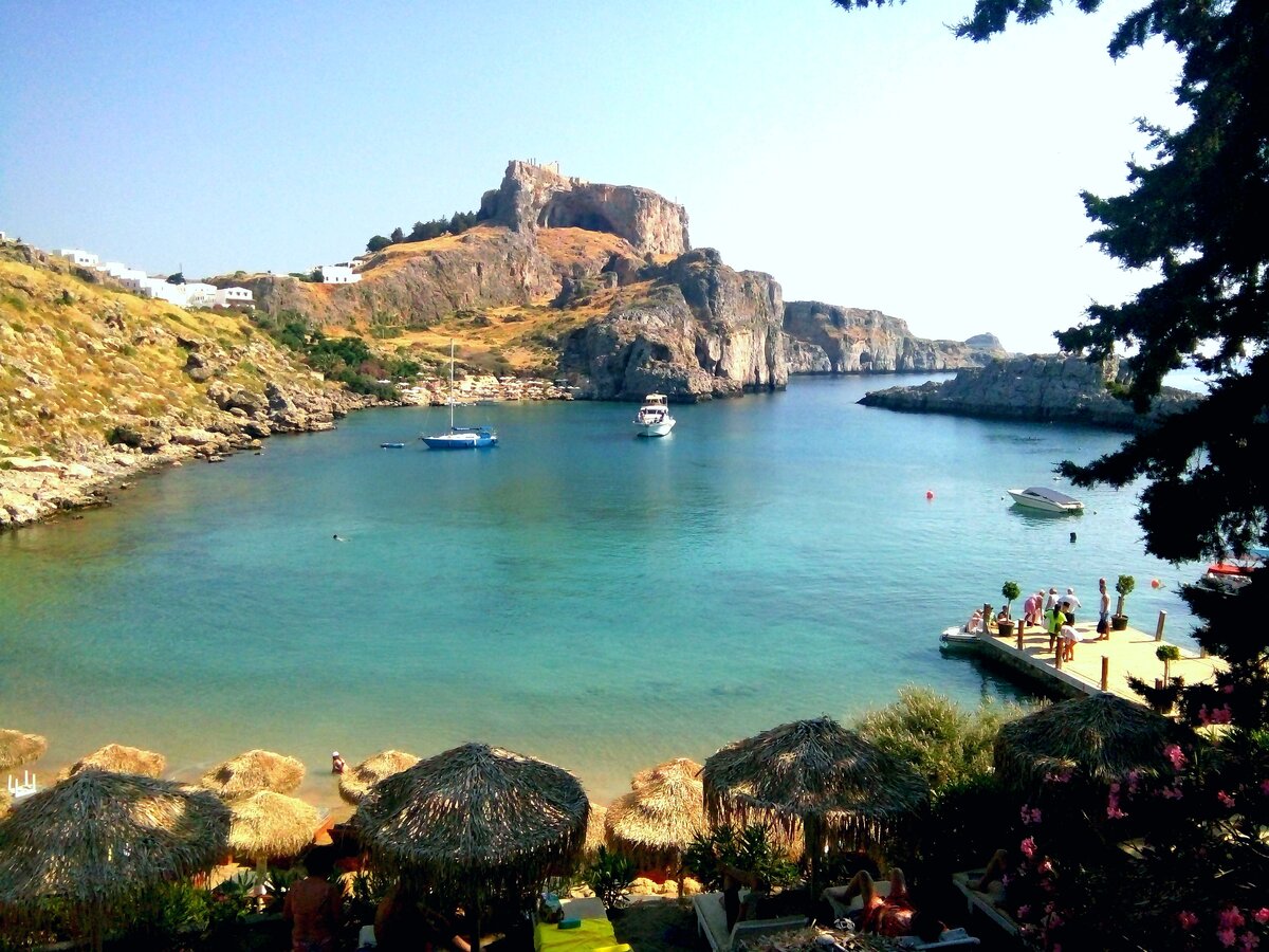 Бухта Энтони Куинна поражает своей сказочной красотой! Восхитительная прозрачная вода, огромные камни, выступающие из воды и высокие скалы по бокам создают удивительную картину.