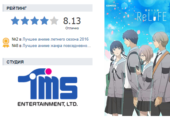 Аниме мне действительно понравилось. В нем есть великолепная главная героиня, адекватный главный герой, оригинальная для комедийного жанра идея, и множество по-настоящему смешных и серьезных моментов, возвышающих ReLIFE над рядовым комедийным аниме про школьников. Оно смотрится легко, и я совершенно не жалею о потраченном времени. Начало аниме удалось на славу — с лица у меня не сползала глупая улыбка. Порой сам не понимаешь, отчего улыбаешься, но на душе при этом хорошо и тепло. Концовка тоже получилась приемлемо. Но череда неудачных серии в середине аниме притупляют зародившийся было восторг. Обидно, что столь перспективную идею испортили парой неудачных серий. ReLIFE — хорошее аниме, заслуживающее внимания, однако так и не раскрывшее весь свой потенциал (только если не прочитать мангу).