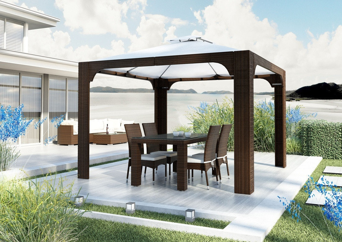 Ротанг или коламус: особый вид тропической лианы, представляющий собой длинные стебли ротанговой пальмы. Такие побеги могут достигать длиной до 300 метров, что делает их очень удобным материалом для мелкого строительства и создания разнообразных предметов. Часто из ротанга плетут дачную или пляжную мебель, а также беседки из этого вида лианы. Такие постройки смотрятся весьма эстетично и представляют собой оригинальное архитектурное решение, украшающее зону отдыха на дачном участке. Ротанг бывает как натуральный, так и искусственный. Каждый материал имеет свои особенности. Преимущества природного ротанга для беседки •Высокая эластичность и гибкость;