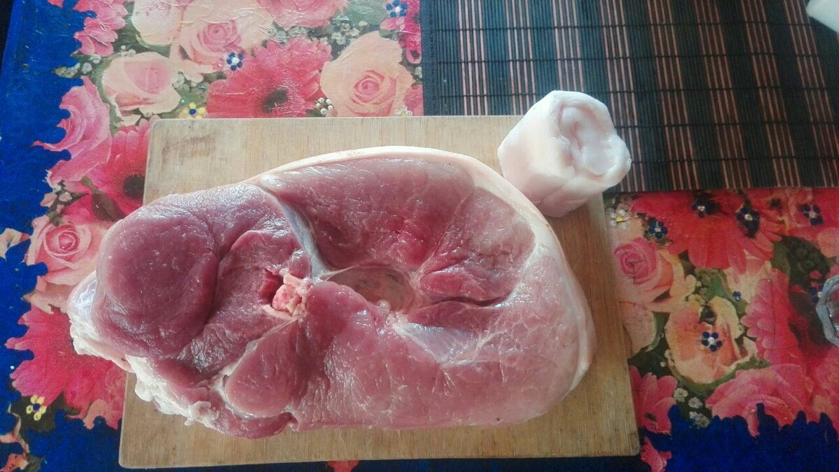 Итак, у меня был окорок, в котором нужного мне мяса было весом около 1 кг 600 гр, и сало.