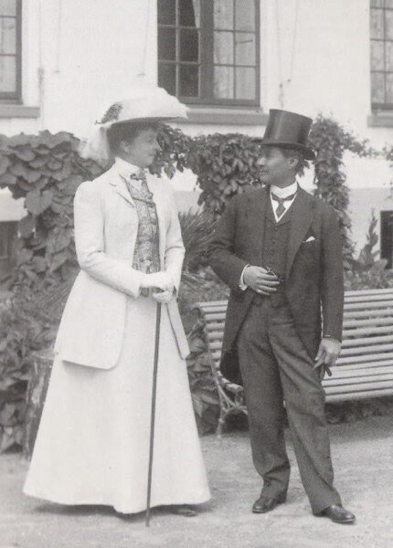 Король Сиама Чулалонгкорн (1853-1910) - был сыном Короля Монгкута и Королевы Дебсириндра. На фотографии Король Сиама Чулалонгкорна (Chulalongkorn) и принцесса Мария Орлеанская. Дата 1907 год. У него было большое количество наложниц и 4 жены, которые в общем родили ему 33 сына и 44 дочери, плодовитость Короля поражает. Он один из самых почитаемых королей в Таиланде. В его честь проходит праздник, который отмечается в день его смерти, чтобы почтить память Великого Короля Сиама. Его отец Монгкут - дал ему хорошее образование, в том числе от европейских наставников, таких как учительница английского языка Анна Леонуэнс, которая преподавала во дворце детям Короля Монгкута в течение пяти лет, в том числе и принцу Чулалонгкорна. Анна стала известной после публикации своей книги, в которой написала свои воспоминания жизни в Сиаме (Таиланде) и во дворце. История её жизни в Таиланде послужила основой для романа Маргарет Лэндон «Анна и король Сиама», а также фильмов: - «Анна и король С