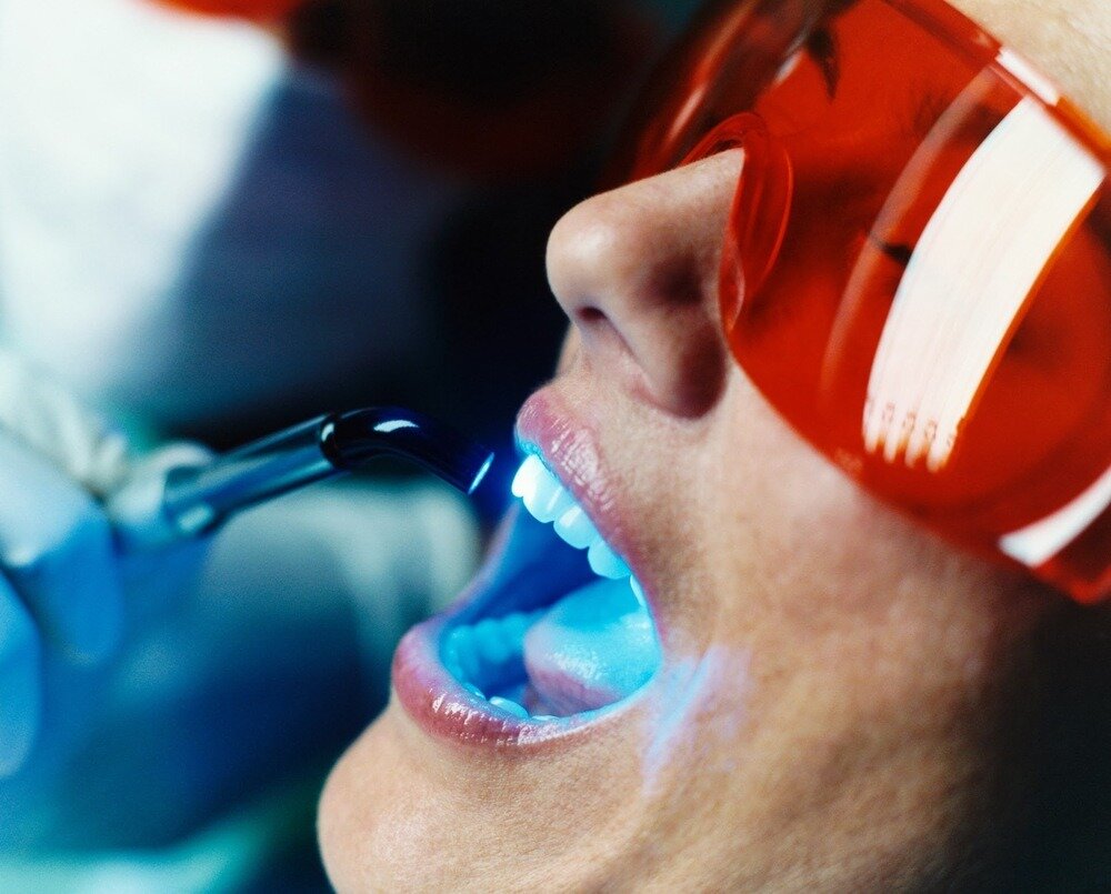Отбеливание зубов Beyond Polus – это инновационная, высокотехнологичная, безболезненная, абсолютно безопасная и эффективная методика профессионального отбеливания зубов. Как работает система отбеливания зубов Beyond Polus Основной секрет методики заключается в том, что отбеливание осуществляется специальным устройством лампы. Технология системы BEYOND™ Polus объединяет мощный галогеновый и светодиодный источники света, обеспечивает интенсивный световой поток, в то время как современная система фильтрации света защищает от повышенной температуры и ультрафиолетового излучения. Эта безопасная и эффективная технология гарантирует Вам великолепную улыбку! Свет излучаемый лампой активирует отбеливающий гель. Таким образом происходит процесс отбеливания зубов. Выделяемый из отбеливающего геля кислород попадает через эмаль в дентин (он находится под эмалью зуба и обусловливает его цвет, ведь сама эмаль прозрачна) и воздействует на пигменты. В результате зубы выглядят не просто белыми, а ослепи