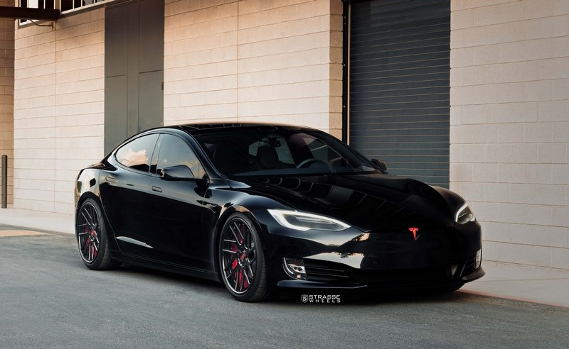 Большинство владельцев Tesla Model S P100D вряд ли будут изменять внешний вид этой машины. Но всегда найдутся те, кто захочет немного добавить индивидуальности своей электрической колесницы. Strasse Wheels представили свой взгляд на доработку этого автомобиля, внеся небольшие штрихи в экстерьер. Модель P100D получила полностью чёрный окрас. Strasse Wheels убрали большую часть хромированных элементов, а также затонировали фары, задние фонари и стёкла. Завершает внешние изменения задний спойлер и набор стильных 21-дюймовых дисков SM7T Deep Concave. За ними виднеются массивные красные суппорта, которые отлично контрастируют с чёрными дисками. Цветовая тема продолжается эмблемой Тесла, которая также окрашена в красный цвет. Несмотря на то, что Tesla Model S P100D внешне стала выглядеть заряженной, полноприводная силовая трансмиссия осталась неизменной. Да и модернизировать её незачем. P100D разгоняется с 0 до 100 км/ч всего за 2,7 секунды. Она обошла по разгону такие суперкары