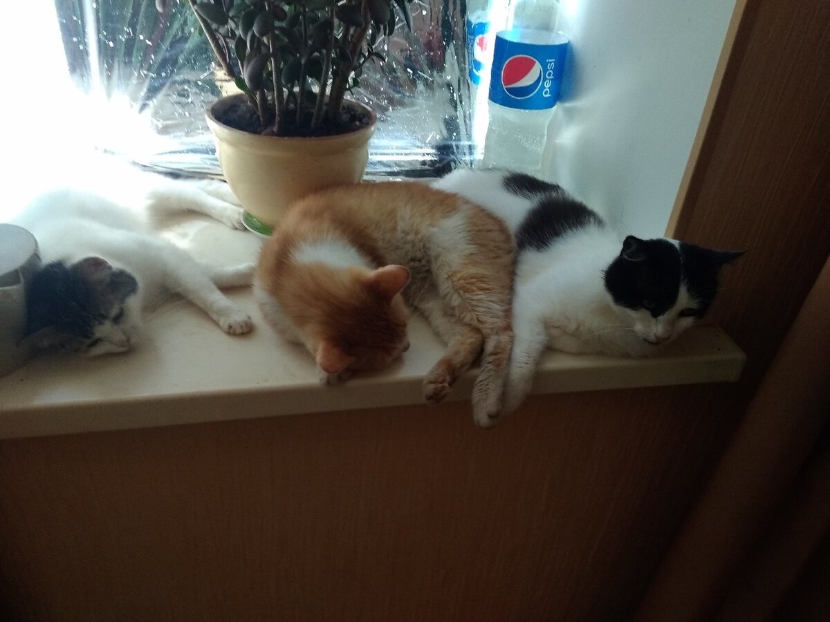 Немного о наших котиках. Ставших уже сельскими котами из домашнего мини-приюта Людмилы Ч. 28-го числа волонтер утром проснулась, в сетке дырка, и половина ее живности на улице. Ребятам очень понравилось, резвились в травке, кто сидел на крыше, а кто на дымоходе. ))) Два метра высоты забора оказалось не препятствием! Очень Людмила Ч. переживала, когда они вышли за нашу территорию. Но к удивлению они очень быстро сообразили, где их участок. - Теперь я могу быть спокойна, что мои котики не потеряются, а найдут дорогу домой! - с улыбкой на лице говорит волонтер. Котейки не дают волонтеру скучать. Видимо им уж сильно стало любопытно, что там снаружи! Они же в окно видели, как собачки резвились на улице. Вот и решили сами попробовать... Интересно, кто же был первопроходчиком? Котейки молчат, как рыбы и своих не сдают!)
