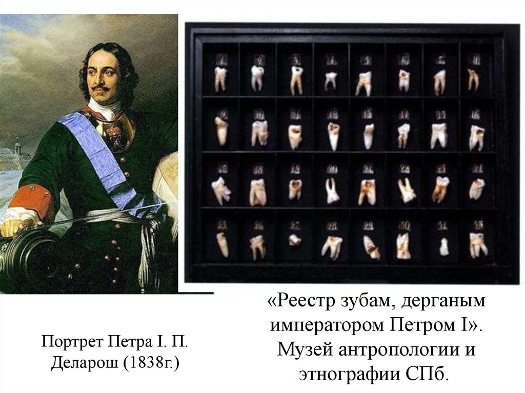 Император Петр I обожал вырывать зубы сам. Он даже собрал внушительную коллекцию зубов.