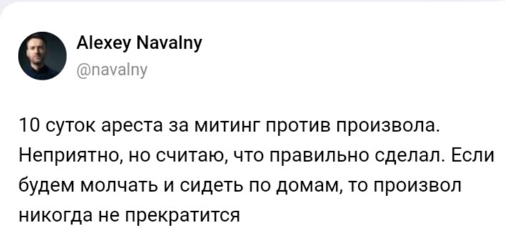 ▪Навального закрыли на 10 суток. Просто потому, что он всех задолбал своими расследованиями, где, как на ладони, вся скромная экономика. ▪️А вот и иллюстрация к причинам ареста Навального подъехала ▪️Иркутская область. Потоп. ▪️Пока Навальный будет мять нары... ▪️Либерал парировал. Весьма оригинально. ▪️Едро пробивает дно: просто приехали и на гуманитарную помощь от обычных людей для жертв потопа налепили свои этикетки. Адовый трэш. ▪️Что положительного в политической ситуации в России? Скоро общество разделится на тех, кто за Путина и тех, кто против. Ну, как на красных и белых. Никого уже не будет волновать в чем вообще смысл. Те, кто "За", будут совершенно убеждены, что те, кто "Против" финансируются фашистами-рептилиями, а противники Путина будут считать, что ватников надо излечивать огнём. Начнётся дичайший замес на ровном месте. Неизвестно, кто первый нажмёт кнопку, но бабахнет так, что реакцию никто не сможет остановить, и на месте Земли сингулярность образует сверхмассивну