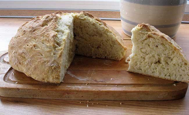 Если у вас прокисло молоко, это хорошо, значит, пора готовить ирландский, бездрожжевой хлеб. Это, пожалуй, самый быстрый хлеб. На все, про всё уйдет не больше часа, вместе с выпеканием. Хрустящая корочка и чуть влажный мягкий, эластичный мякиш. Как упомянул выше, в этом хлебе нет дрожжей, а узнаваемая, хлебная структура создается гашением соды молочной кислотой. Подобное тесто можно увидеть в кухнях разных народов мира, так например в самсе, курнике или пирожках тесто делается на сметане или другом, кисломолочном продукте. Но так повелось, что ирландский хлеб известен больше всего. Мне этот хлеб нравится не из того что в нем нет дрожжей, а потому что он быстрый. Сам рецепт долго искать не пришлось, поскольку существует сайт общества по сохранению ирландского содового хлеба. Джеймс Оливер также делится рецептом, и они практически совпадают. Итак, сам рецепт К сожалению, черновик писался пару лет назад, и все фото, кроме готового продукта канули в лету вместе с одним из фото банков
