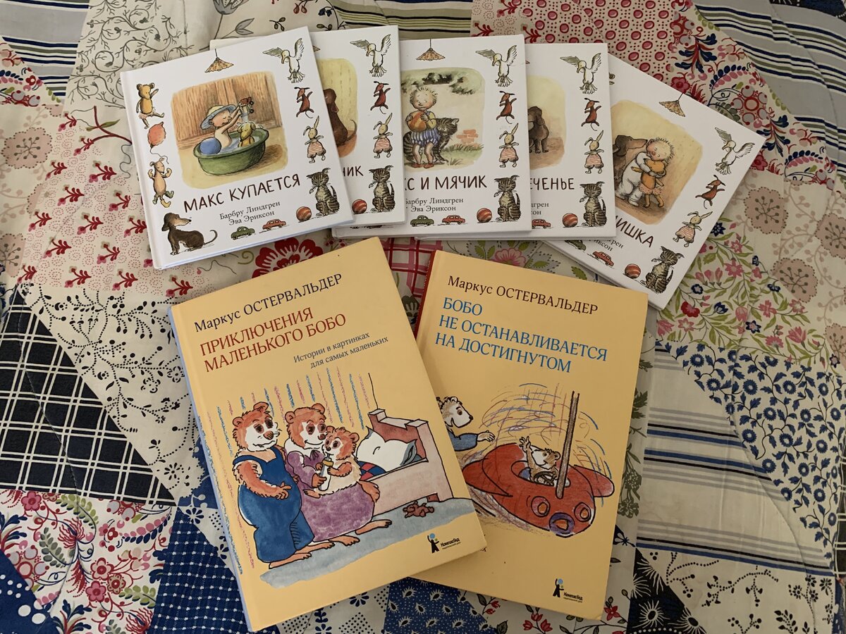 Самый любимый сейчас (в полтора года) у Саши жанр — то, что я называю "бытовуха для малышей". Простые, повседневные малышачьи дела, описанные во всех деталях и подробностях. Казалось бы, таких книг должно быть много, но нет. Энциклопедий с простым перечислением (в гостиной есть диван, ковер, телевизор) тех да, полно, а книг с минимальным, но всё же сюжетом — единицы.