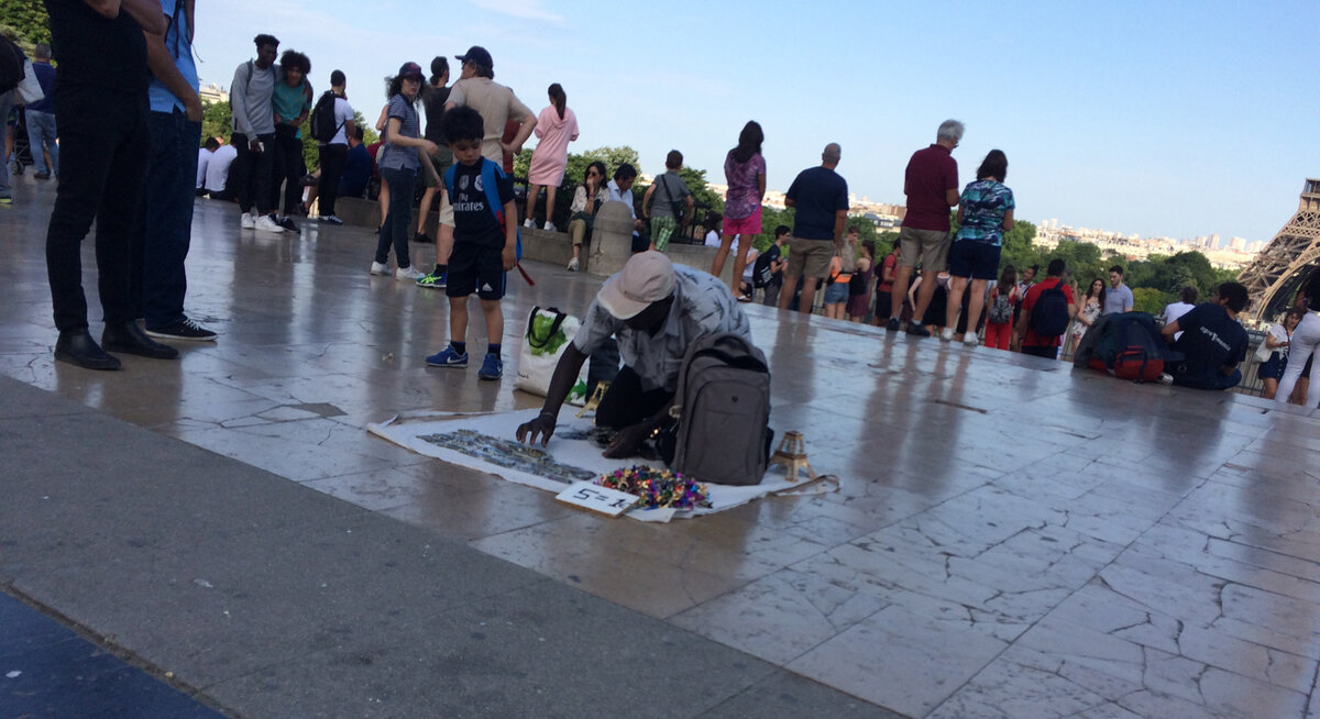 Если вы не были в Париже, то вы наверное удивитесь, услышав это, но у бывших жителей Африки в этом городе практически монополия на торговлю Эйфелевыми башнями. У абсолютно каждого туристического объекта вы увидите этих парней с наборами "5 башен за три евро". Еще они продают воду, пиво и иногда другие знаменитые сувениры.