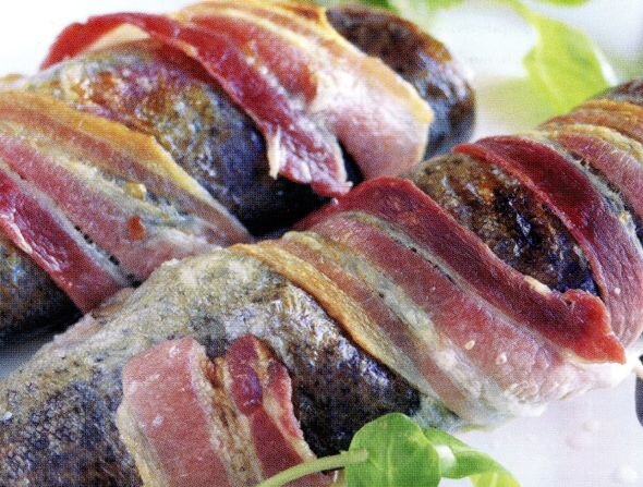 Рецепт для пикника - запеченая форель в беконе