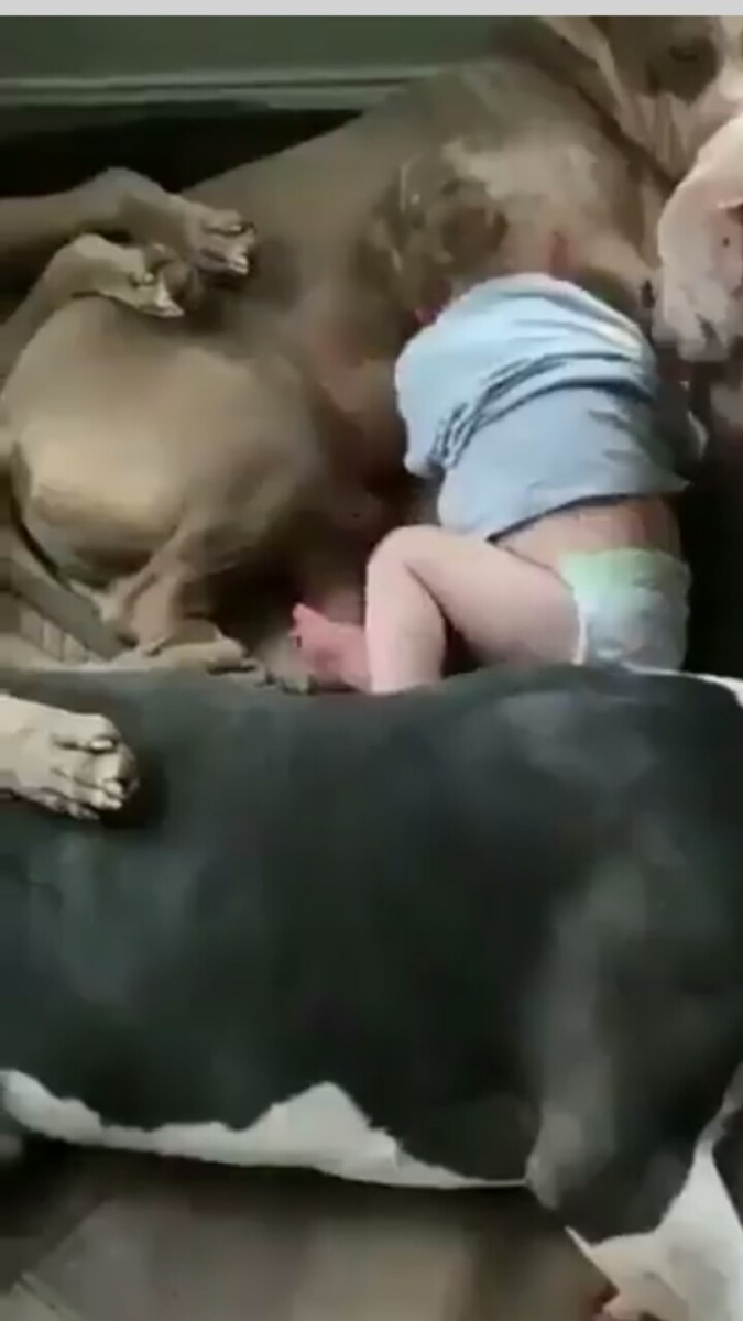 Эти скриншоты сделаны из одного видео в инстаграме,на котором ребенок ложиться спать в компании 4 питбулей.По выражению лица младенца видно,что в большей безопасности он себя никогда не чувствовал и никакого страха или угрозы он не испытывает.Комментарии под видео как обычно разделились на 2 фронта.Тут же подъехал поезд с "яжемать",а следом за ним и любители собак. Первые утверждали ,что родители ребенка просто сумасшедшие ,а вторые-что эта порода собак скорее умрет сама чем обидит ребенка Видео на самом деле очень милое,но даже самых адекватных людей десятисекундный ролик держит в напряжении покруче любого триллера. Американский питбультерьер -одна из тех пород ,которые чаще других сталкиваются с предрассудками и неоправданно навешанными ярлыками.Ещё более ста лет назад американские ученые выявили тот факт ,что эти собаки являются замечательными няньками.Были созданы специальные питомники где питов разводили и продавали только в семьи с детьми.В доказательство этому в интернете можн