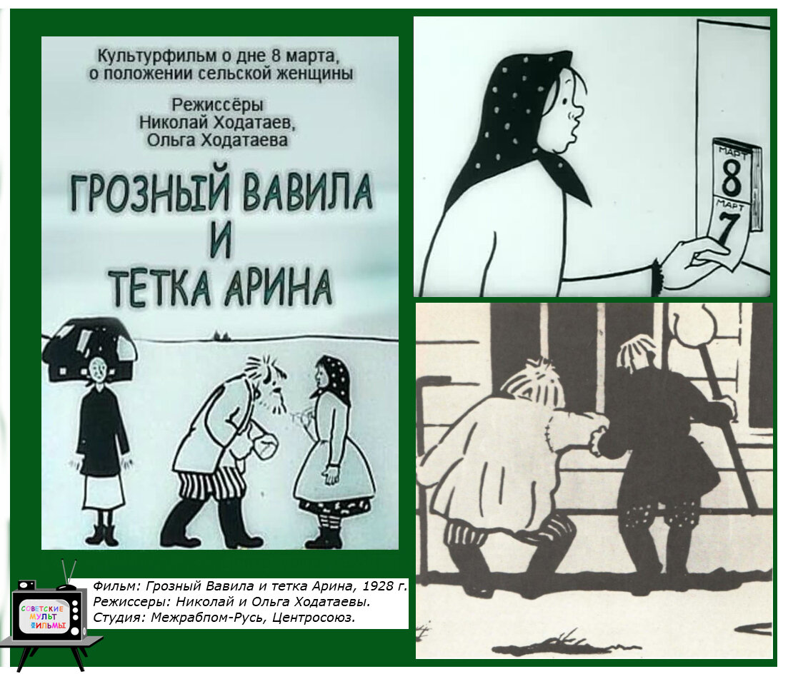Основной мультипликационной продукцией середины 1920-х годов стали маленькие агитационно-сатирические фильмы. Среди них были представлены: 1) Антирелигиозные. Например, картины А. Бушкина «Дурман Демьяна» и «Икона». 2) Идеологические. Например, лента В. Григорьева «Держи чубаровца», направленная против злостного хулиганства. Или фильм Д. Толмачева «Дом вверх дном», в котором высмеивалась плохая работа строителей. 3) Социальные. Например, фильм «Алименты» по сценарию А. Владимирова со стихотворным текстом В. Тимофеева. Этот фильм был карикатурой на некоторые пережитки старых отношений к женщине и семье. Ряд удачных публицистических фильмов создал коллектив Н. Ходатаева. Они были преимущественно посвящены вопросам улучшения работы на селе. Среди них особенно выделялась картина «Грозный Вавила и тетка Арина» (1928), в которой были выведены характерные комедийно-сатирические персонажи. Содержание картины следующее: У тетки Арины день за днем походит в хлопотах по хозяйству. Но однажды взб