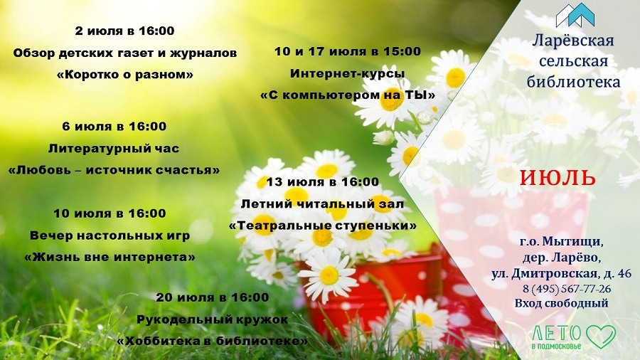 #Ларевскаясельскаябиблиотека #деревняЛарево #анонс #входсвободный #мероприятия_июль