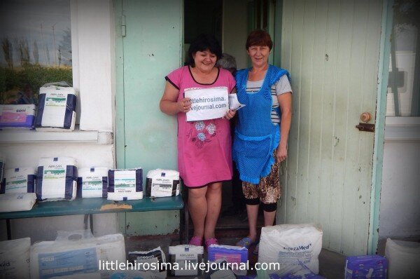 Ага, памперсов для взрослых, которые нам передала замечательная Инесса из Москвы. Я в том посте еще на фотографии стою со скотчем и маркером, которыми мы упаковывали груз.