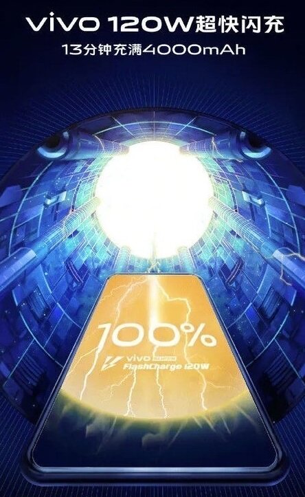 Vivo super FLASH CHARGE 120W - самая быстрая зарядка в мире. Она поддерживает 20V/6A и заряжает смартфон полностью за 13 минут. А за 5 минут смартфон сможет зарядиться на 50%. При зарядке смартфон немного нагревается. На данный момент, смартфон с самой быстрой зарядкой является Oppo Find X, который полностью заряжается за 35 минут.