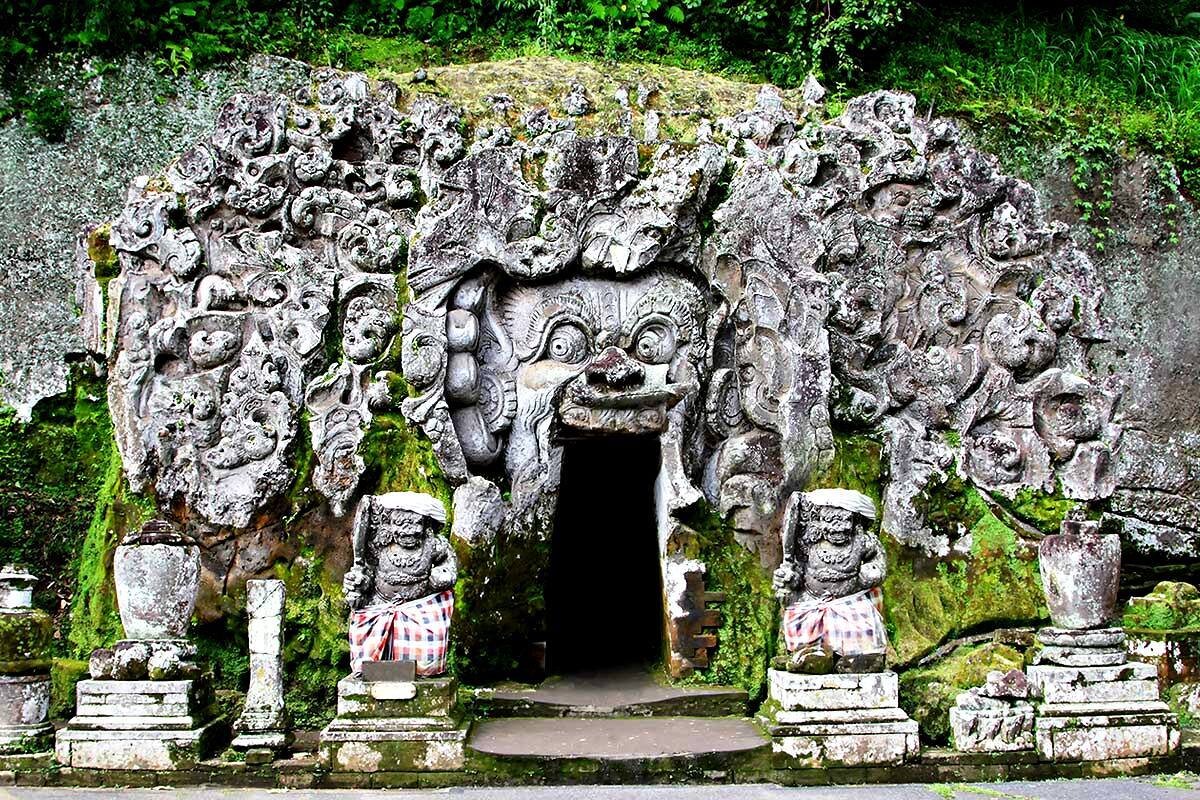 В северной части Бали, неподалеку от деревни Бедулу есть пещера Гоа Гаджа. Ученые считают, что нынешний вид она приобрела в 1022 году, хотя природа ее создала гораздо раньше. Здесь перемешались культуры буддистов и индуистов. Ряд археологов полагает, что Гоа Гаджа вырыта последователями индуизма для обустройства религиозного центра. Внутри пещеры находятся 15 ниш. Они служили, вероятно, для медитации и сна. По некоторым данным, с не меньшим трепетом к этому месту относились и буддисты. Об этом свидетельствует множество обнаруженных буддистских артефактов. Относительно названия у экспертов нет единого мнения. Некоторые считают, что входной барельеф является символом слона. Другие полагают, что наименование пещере дала скульптура Ганеши-Ганапи — бога мудрости и благ в индуизме в облике человека-слона. Внутри грота, на восточной стороне, есть и 3 цилиндрических символа Шивы черного цвета высотой 50 см на общем основании. Гоа Гаджа — это не только пещера. Здесь есть фонтан с женскими ску