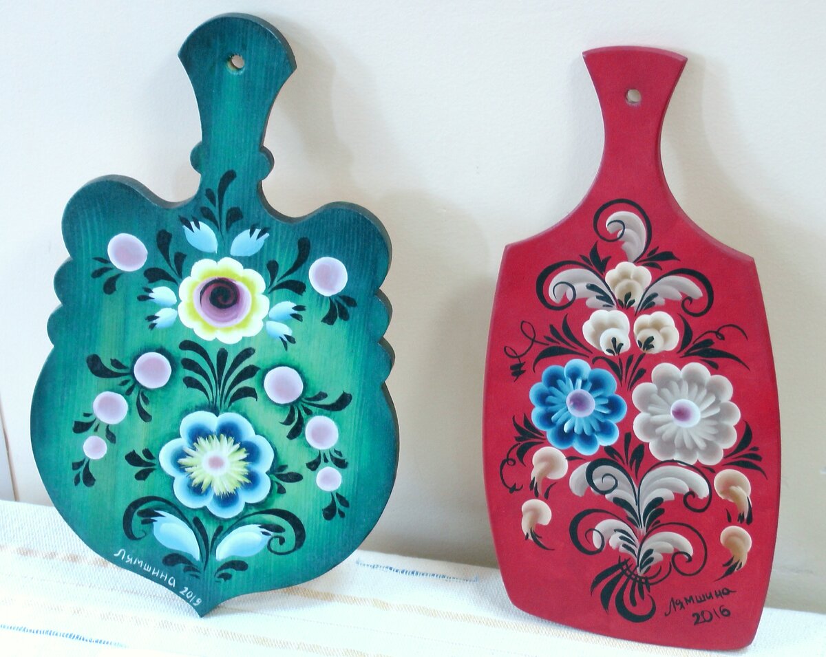 Недавно я участвовала в выставке "Вятская роспись. Творенье кисти и резца" со своими двумя досками, нарисованным по мотивам росписей русского севера. О зелёной досочке вы можете прочитать в моей статье (там есть и видео), а красную я рисовала онлайн как приглашённый мастер. Кроме авторских изделий, старинных работ и их современных копий на выставке были представлены детские работы даже дошколят! Их я и решила показать в этой статье. Как можно заметить, детям очень нравится северный лев, которого любили изображать вятские мастера. Красильщики украшали домовой росписью север Кировской области и деревни необъятного Урала. В работах детей вы видите и птичек. Некоторые обосновались на ветках, а другие, особо смелые, сидят на головах у львов. Часть рисунков детей выполнены по образцам вятской сундучной росписи, мастерство которой передаётся до сих пор. Старинные работы и изделия современных мастеров я планирую показать в будущих статьях. Как вы могли убедиться, детки в садике отлично спра