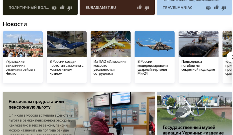 Это просто блок новостей из моей ленты Zen, я ничего не подкручивал, просто листал ленту и наткнулся на ЭТО. Ничего не видите? Смотрим новости слева направо. 1. Ок, нормально. 2. В России создан прототип самолета с композитным крылом Это новость про Як-40. На фото ТВС-2ДТС "Байкал". Спутать эти 2 самолета невозможно. Если первый это реактивный ближнемагистральник, то второй это винтовой "Кукурузник". Как можно готовить материал, ничего в нем не понимая? 3. Из ПАО «Ильюшин» массово увольняются сотрудники Я об этом даже статью написал, полистайте мой журнал. В новости не увольняются, а их увольняют, не массово, а 80 человек менеджмента. Ну хотя бы на фото действительно самолет "Ил", уже хорошо. 4. В России модернизировали ударный вертолет Ми-24 На фото Ми-26. Это совершенно разные вертолеты, Если Ми-24 это ударный вертолет, силуэт которого известен всему миру, то Ми-26 не менее известный, но тяжелый транспортный вертолет! 5. Подводники погибли на секретной подлодке Шедевр! Фото "Лош