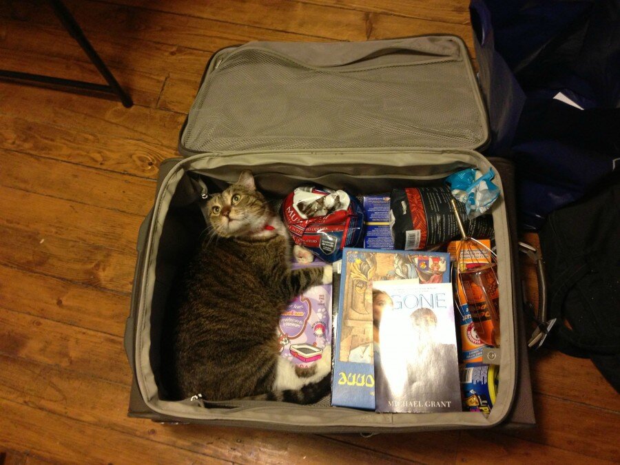 Есть хороший анекдот на тему: "доставая свитер из шкафа ты найдёшь там кучу разной одежды и пять раз своего кота". Эту страсть котов к укрытиям вроде шкафа объяснить несложно. В шкафу тишина, темнота, и всё окружающее пахнет любимым хозяином. А вот как объяснить кошачью любовь к самоупаковыванию в сумки, или активную помощь в разборке покупок? Недавно родственник собирался в командировку в моём присутствии, под дикий хохот своего семейства. Уложил на диван сумку, раскрыл её, ушёл за вещами. Вернулся, вытащил кошку, уложил одежду. Сходил за бритвой. Вытащил из сумки кошку. Принёс папку с бумагами, вытащил из сумки кошку. Принёс забытый галстук, извлёк из сумки недовольно фыркнувшую кошку... На это можно было смотреть бесконечно. Улучшив минутку, Маня ловко ныряла в дорожную сумку и устраивалась там с видом: "А ничего квартирка, жить можно!". После того, как сборы всё же закончились и вещи отнесли ко входной двери, она ещё долго ходила вокруг сумки, дёргая лапой то замок, то застёжки. Ко