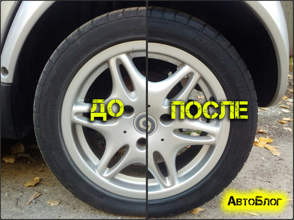 Летняя резина у многих может выглядеть поношенной, однако не стоит спешить выкидывать ее. Исправить положение можно с помощью процедуры чернения. Сегодня, автомобильный рынок переполнен различными косметическими средствами для ухода за автомобилем. В список этих средств входят и жидкости для чернения колес, которые довольно простые в применении и пользоваться ими можно без какой-либо специальной подготовки. Итак, какие же существуют способы очистить и чернения покрышки? Зачем же чернить покрышки? Данная процедура возвращает покрышкам их первоначальный вид. Мало кто знает, но специальная жидкость не окрашивает колеса, а лишь усиливает черноту. После применения покрышки выглядят так, как будто их только что купили в автомагазине. Помимо внешнего вида, специальный состав защищает покрышки от прилипания грязи, пыли и разных реагентов. Еще, некоторые средства обладают как бы размягчающим свойством. Так колеса эксплуатируются дольше. Способы чернения покрышек Легче всего приобрести специальн