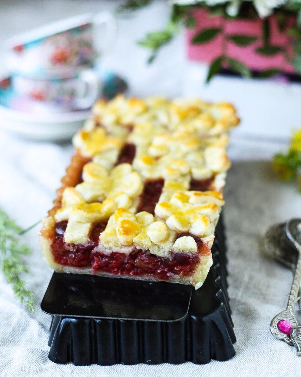 Урожай черешни в этом году был очень большой! Поэтому я успела напечь пирогой и вдоволь наесться ягод😋 Самый любимый вариант пирога, пишу для вас😉👇🏼 Черешня( примерно 250-300гр) Кукурузный крахмал 1ст.ложка Я добавила 0,5 цедры лайма( люблю нотки цитруса) можно и без него. Песочное тесто: Мука 1 стакан Масло сливочное 100 гр. 2 ст.ложки сахара 0,5 ч.л.соли 3 ст.ложки молока Приготовим тесто: ✅Муку, сахар, соль и масло перетереть до крошки. ✅Добавить молоко и вымесить тесто. ✅Тесто обернуть пищевой плёнкой и убрать в холодильник на 30-40 мин. ✨Готовим начинку: ✅Черешню помыть, выбрать косточки. ✅Добавить к черешне крахмал и цедру лимона. Все хорошо перемешать. ✅Достать тесто из холодильника, разделить на две части: одна для основы, другая для украшения. ✅Раскатать первую часть теста и положить аккуратно в форму для пирога. ✅Залить начинкой. ✅Из другой части теста сделать украшение для пирога. Можно просто накрыть таким же кругом из теста, но не забудьте тогда сделать отверстие в с
