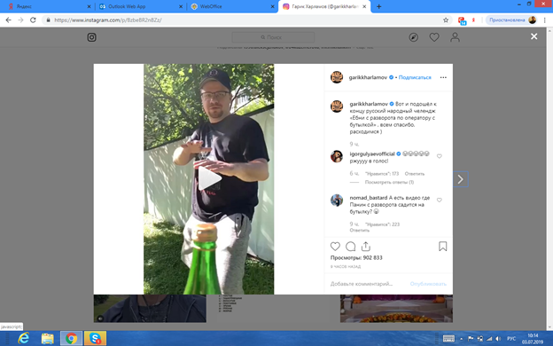 Известный российский юморист, Гарик (Бульдог) Харламов, принял вызов Конора Макгрегора и разместил на своей странице в инстограм смешные видео, доказав этим самым, что не отстает от моды и новых течений https://www.instagram.com/p/BzbeBR2nBZz/ https://www.instagram.com/p/Bzaqh6BnP_N/