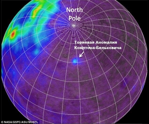 "Бурные извержения вулканов, возможно, случались сотни миллионов лет назад на обратной стороне спутника Земли. Еще в 2011 году ученые идентифицировали на Луне область площадью около 25х35 километров, которую назвали ториевой аномалией Комптона-Бельковича. Теперь повторный анализ грунта с помощью данных гамма-спектрометра Lunar Prospector показал, что торий, тяжелый радиоактивный металл, распространился далеко за пределы этой области — на 300 километров восточнее. Исходя из расстояния и массы вещества, ученые пришли к выводу, новые данные свидетельствуют об энергичной вулканической активности, которая имела место на Луне в далеком прошлом" Это открытие с подробными выводами и комментариями растиражировали все новостные и научные издания: "Ториевая Аномалия Ко