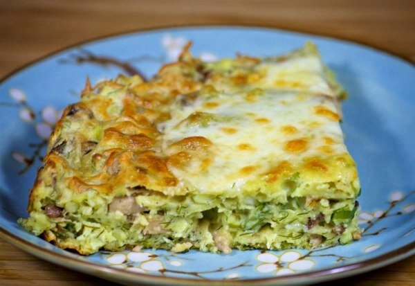 Заливной пирог с курицей и грибами напоминает запеканку, но на самом деле это вариация пирога с заварной заливкой с курицей и грибами – но без корочки. Не самый быстрый рецепт для приготовления, однако, как только вы поставите его в духовку, он не потребует особого внимания, просто проверяете на готовность – и все. В рецепте заливного пирога с курицей и грибами возможно использование предварительно приготовленной курицы (жареной или отварной). Тогда вам останется только обжарить грибы и добавить приготовленную курицу в пирог. Это также ускорит приготовление блюда. Этот пирог будет иметь успех на завтрак, обед или поздний ужин. Он пригодится в поездке, или как перекус в офисе. Рецепт летний – из-за наличия большого количества лука и укропа, но, конечно, можно готовить его круглый год. Рекомендую испечь – рецепт простой и вкусный. Ингредиенты: 300 г куриного мяса без костей и кожи; 300 г грибов; маленький пучок зеленого лука; маленький пучок укропа; 3 яйца; 100 г тертого сыра; 2/3 стака