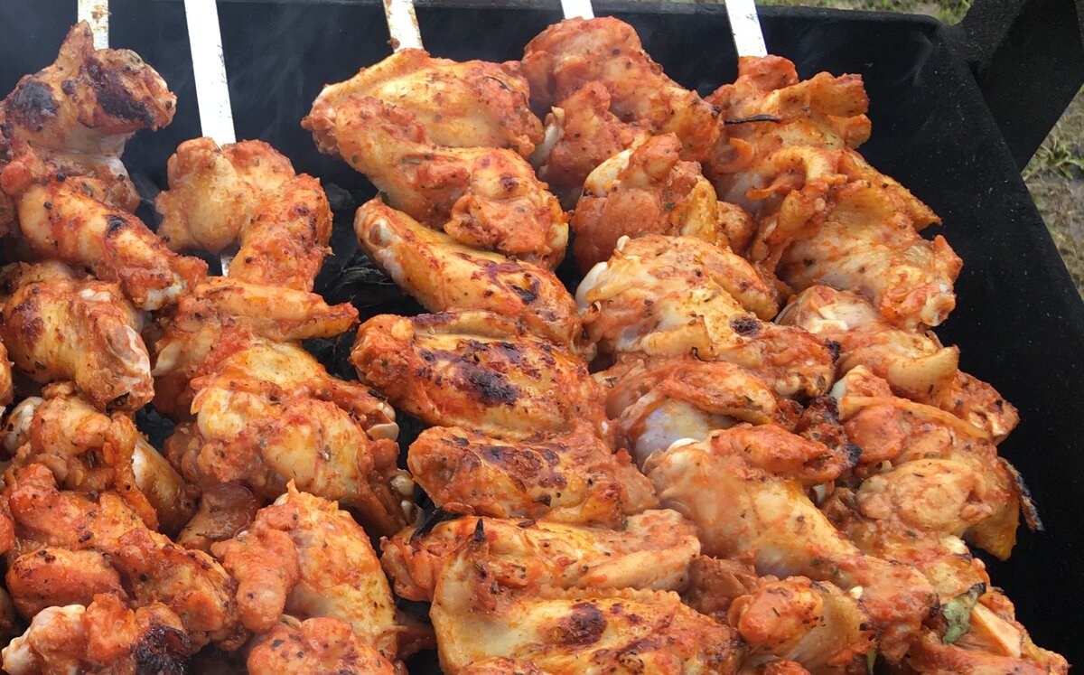 Лето в нашей семье – традиционная пора шашлыков. Только вот если готовить свинину или индейку каждый выходной, во-первых, надоедает, а во-вторых, для кошелька накладно. Для разнообразия решили попробовать сделать шашлык из куриных крыльев –получилось неожиданно вкусно, гораздо лучше чем из привычной шейки! Есть у этого рецепта и еще один плюс: поскольку мяса в крылышках немного, маринуется такой шашлык за минимальное время – мы, например, тратим на это не больше 15 минут. Ингредиенты: · 2 кг куриных крыльев; · 250 грамм протертых помидоров или 100 грамм томатной пасты; · молотый перец, соль, сахар; · любая приправа для курицы. Куриные крылья моем и разрезаем по фалангам на три части. Самую маленькую, крайнюю часть – выбрасываем. Остальное складываем мариноваться в кастрюлю. Выливаем к курице 250 грамм протертых помидоров. Я обычно покупаю фирмы Trattoria, а если их нет – просто развожу напополам с водой стограммовую баночку томатной пасты. Теперь посыпаем крылышки солью, молотым перце