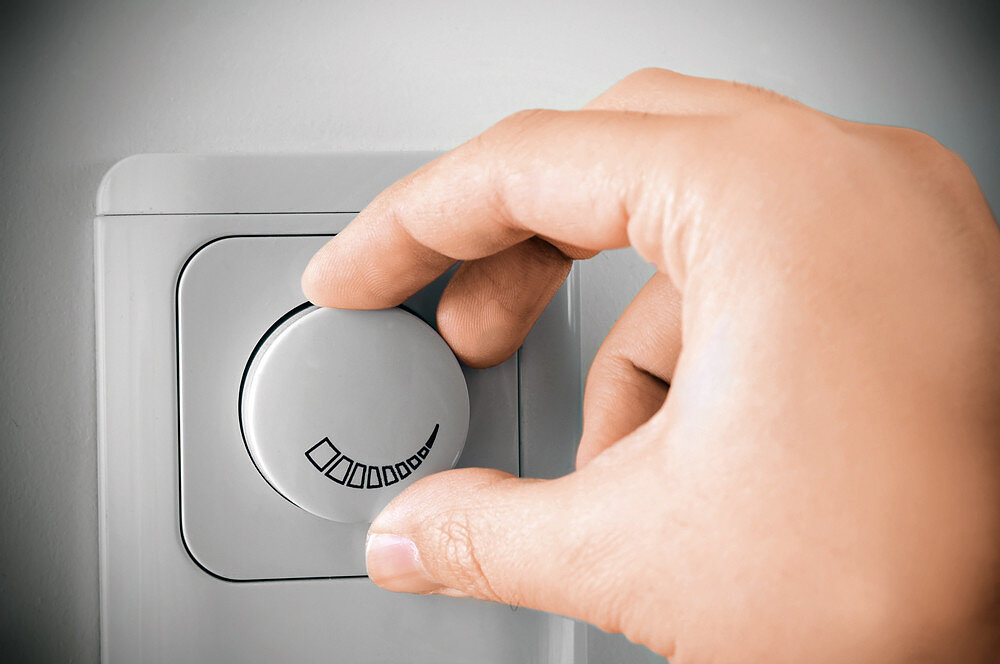- 1-10V – поддерживается не всеми производителями спотов, чаще используется с люминесцентными лампами. Диммер представляет собой потенциометр, передающий сигнал 1-10 Вольт, что и отражено в названии протокола. Светорегуляторы до сих пор используются только из-за того, что полностью не чувствительны к нагрузке, но производители не любят эти диммеры, так как они не позволяют осуществлять дистанционное управление светом и регулировать освещение из нескольких точек.