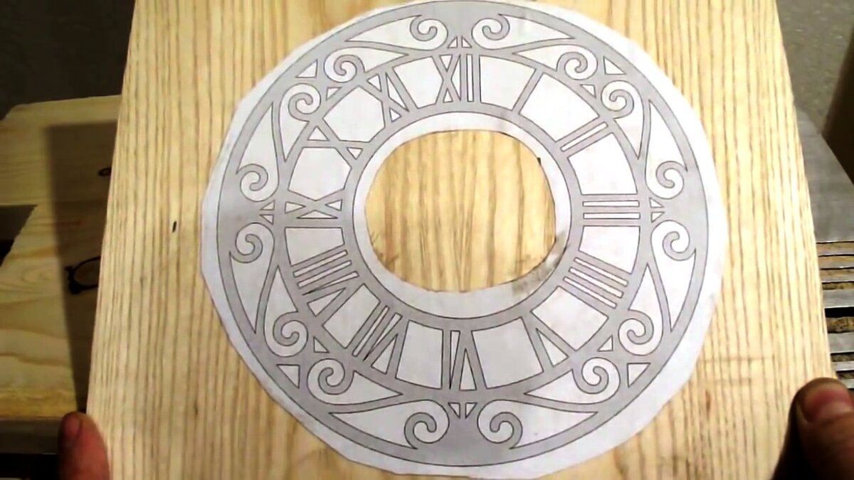 Несколько лет назад нужен был необычный подарок и я решил сделать часы. Сам механизм купил пластиковый, который от пальчиковой батарейки работает, а корпус часов сделал из дерева. Циферблат для часов нашел в интернете. Для него склеил досочку из ясеня толщиной около 5 мм. А для корпуса взял пихтовую доску. С помощью ленточной пилы выпилил круг (это быстрее чем на лобзиковом станке) А циферблат терпеливо выпиливал на лобзиковом станке. После выпиливания циферблат еще немного прошлифовал и снял небольшие фаски, по всем его частям. На пихтовом основании я одной стороны также снял фаску радиусной фрезой. Далее нужно было определить какой глубины делать выборку под часовой механизм. В моем случае, при толщине основания 21 мм, выборку нужно было делать 18 - 19 мм. Сначала просверлил несколько отверстий и поработал стамеской. Затем выровнял пазовой фрезой. В результате часовой механизм разместился довольно свободно. Циферблат я покрасил коричневой гуашью и наклеил на основание. Навес, чтобы