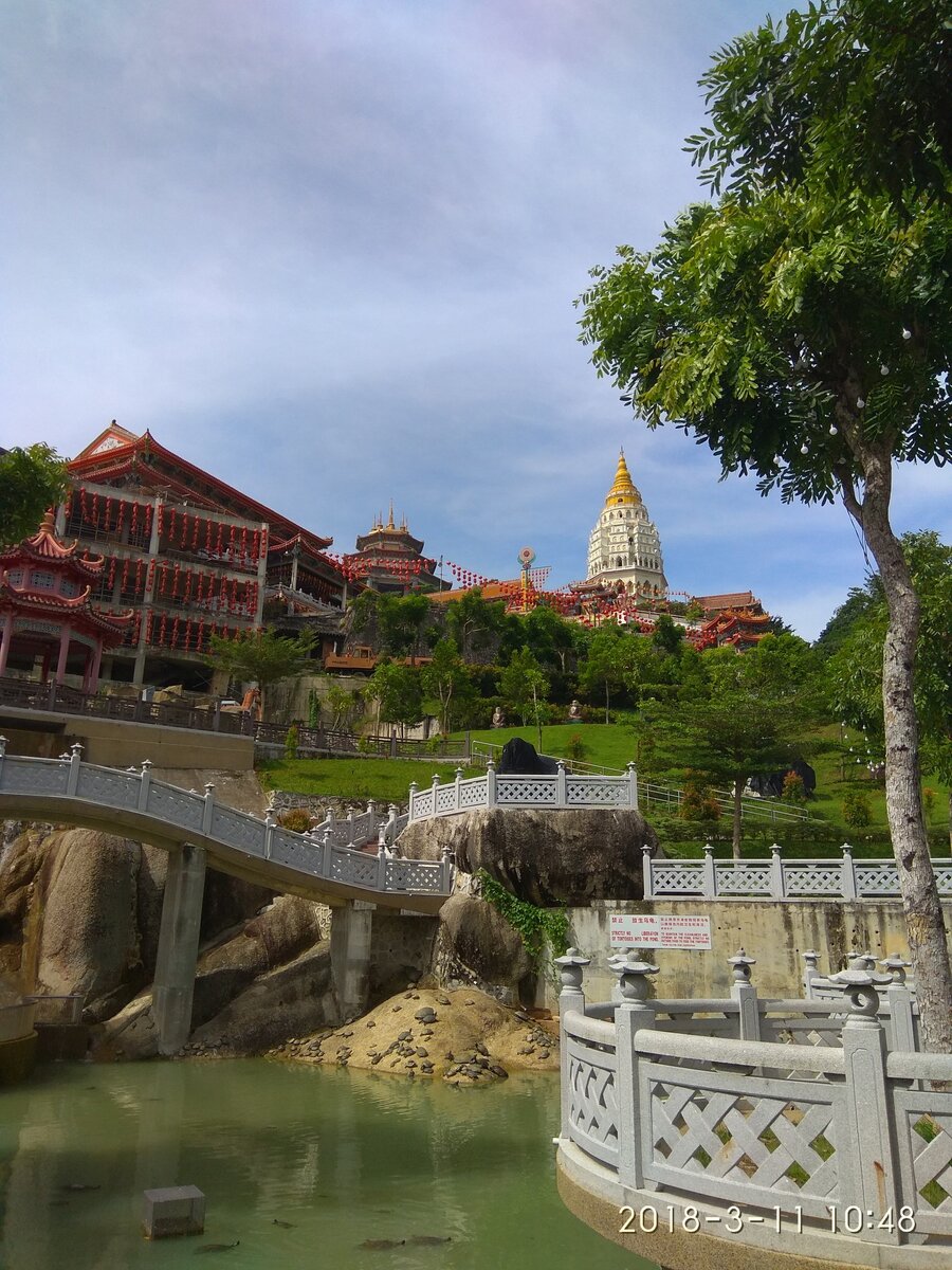 С утра пораньше решили откатать последние часы нашего проездного на Hop-on Hop-Off и поехать на остановку № 4 храм Кек Лок Си (Kek Lok Si) или Храм Высшего Блаженства. О достопримечательностях первого дня можно почитать здесь, что мы увидели во второй день, как попасть в Путраджаю из аэропорта КЛ, и что посмотреть в Путраджае, можно ознакомится кликнув по ссылкам. Храм Кек Лок Си открылся в 1890 году, но продолжали его строить в течение 20 лет. В его архитектуре сочетаются китайский, тайский и бирманские стили. Храм действующий, на территории живут монахи. Встречает храм прудом с черепашками. Храм Кек Лок Си действующий, поэтому вход в сам храм и на территорию комплекса бесплатный. Дополнительно придется заплатить за: Конечно, вы можете и не пользоваться фуникулером, а подняться на гору на своем транспорте или пешком, но мы купили полный билет и катались в свое удовольствие. Подъем состоит из нескольких уровней на каждом из, которых расположена какая-нибудь интересная частичка храма. М