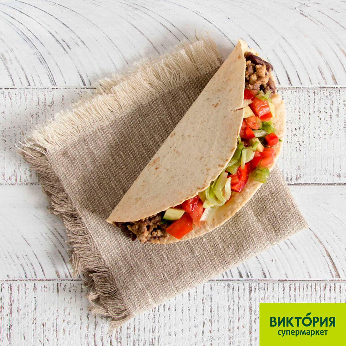 Шаг 3 Заполнять тако следует непосредственно перед подачей, чтобы лепёшки не размокли: слой фасолевого пюре, обжаренный фарш, салат. Полить острым соусом и