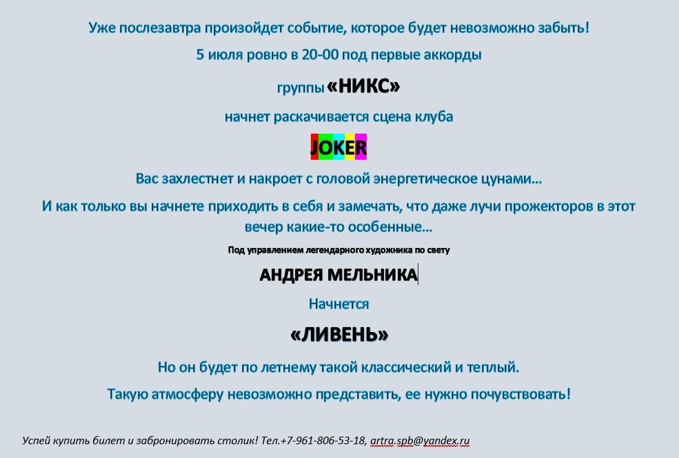 НИКС и ЛИВЕНЬ 5 июля на сцене JOKER!