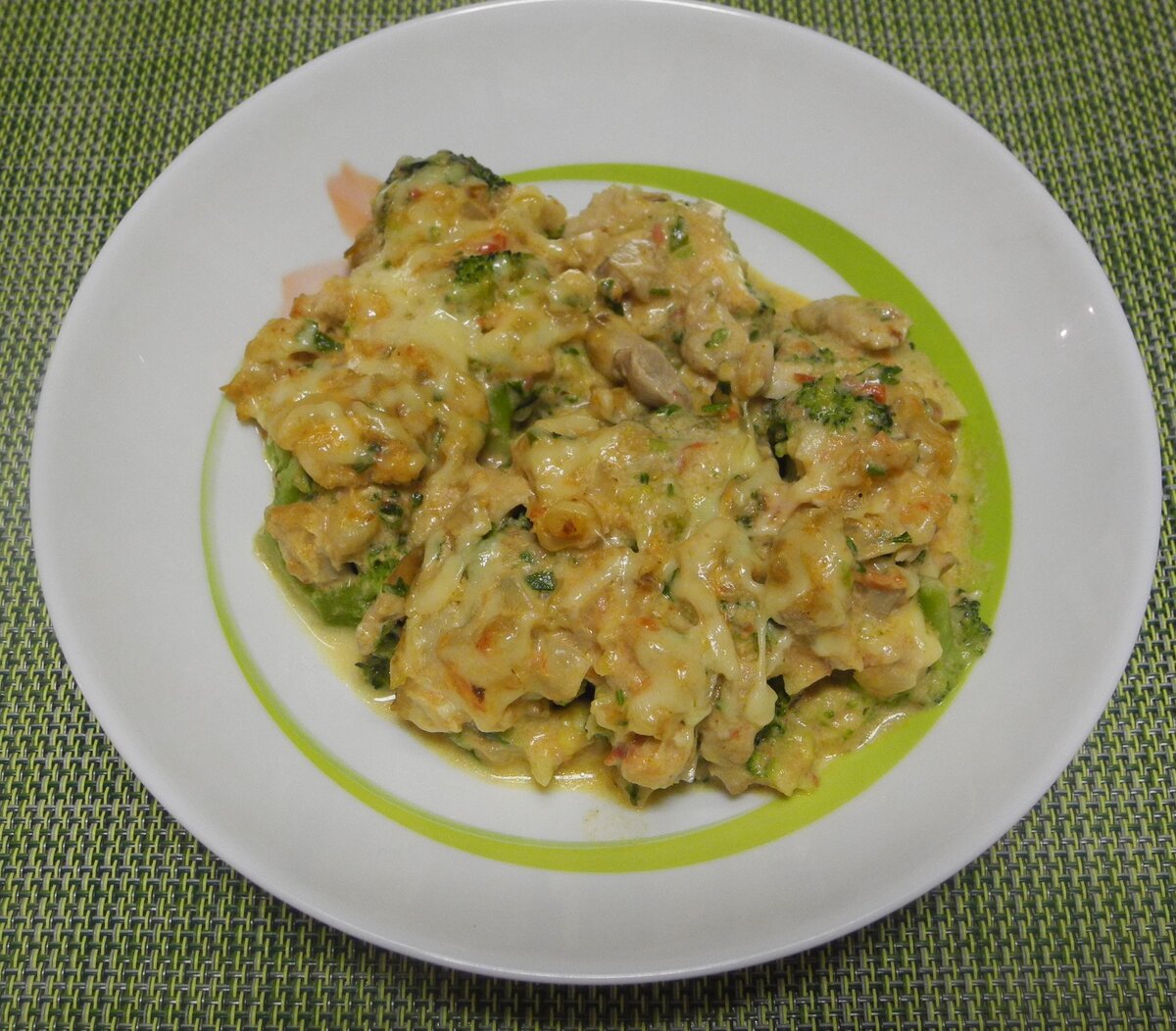 Для приготовления потребуется: 1. Брокколи 300-400 г 2. куриные бёдра 2 шт 3. лук 1 шт 4. помидор (крупный) 1 шт 5. сливки 200 г 6. масло сливочное ( для смазывания) 7. сыр сливочный твёрдый 50-70 г 8. зелень петрушки 9. соль, перец 1. Брокколи отварить до полуготовности и выложить на смазанный сливочным маслом противень. 2. С куриных бёдер снять кожу, отделить мясо от костей, мякоть нарезать тонкими ломтиками и слегка обжарить вместе с луком. 3. Мякоть помидора (без шкуры) натереть на тёрке и выложить к мясу-потушить 3 минуты и добавить сливки 20%, дать покипеть ещё 2-3 мин до загустевания сливок. В готовый соус добавить соль, перец, петрушку. 4. Этим соусом заливаем брокколи. 5. Посыпаем сыром и ставим запекать в духовку при t 200* на 30 минут или пока и не подрумянится сыр. Приятного аппетита! Благодарю за просмотр, если вам было интересно, полезно ставьте лайк и подписывайтесь на канал.