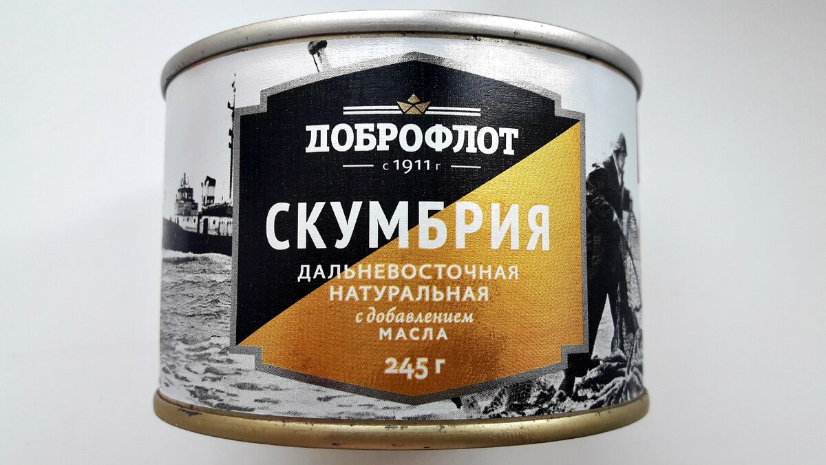 Здравствуйте, уважаемые подписчики и читатели! Продолжаю делать обзоры на рыбные консервы "Доброфлот" (не реклама). Придя в магазин "Магнит" увидел акцию на консервы, цена 55 рублей. Никогда не могу удержаться, чтобы не купить консервы любимого производителя в море "Доброфлот". Цены со скидками на данные консервы меня впечатляют. На сегодняшний день- это самый лучший и честный производитель - это не РЕКЛАМА, а ФАКТ. Начинаю свой обзор консервы "Скумбрия дальневосточная натуральная с добавлением масла". Банка как всегда отличного качества, нет вмятин, этикетка нигде не отклеивается, текст легко читается. Реально производитель не экономит на упаковке. Состав: скумбрия, соль, масло растительное, перец черный или перец душистый. Пищевая и энергетическая ценность продукта в 100 г (среднее значение): белок: 19 грамм жир: 19 грамм Калорийность 247 ккал/1034 кДж. Производитель: АО "Южморрыбфлот", Приморский край, г. Находка. Консервы изготовлены по ГОСТ 13865-2000 Ничего нового крышка банк