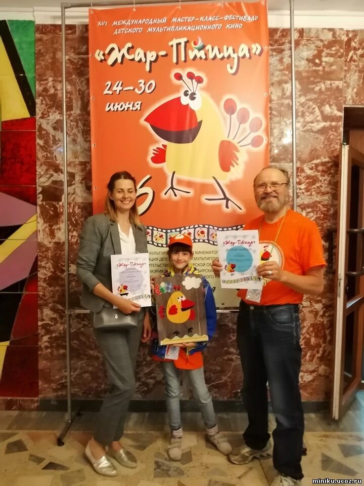 Мультфильм "Сихиртя" (Детская анимационная студия "Северное Сияние", МБУДО "Детская экологическая станция", г. Новый Уренгой) стал лауреатом XVI Международного мастер-класс-фестиваля детского мультипликационного кино "Жар-Птица" (24-30 июня, Новосибирск). Поздравяем руководителя студии Павла Владимировича. Казанцева, автора мультфильма Ксению Носкову и её маму Марину Евгеньевну - с заслуженной победой!!! Впервые детская мультстудия из ЯНАО, относящаяся к сфере образования, вошла в десятку лучших мультфильмов фестиваля "Жар-Птица", начиная с 2009 года!!!