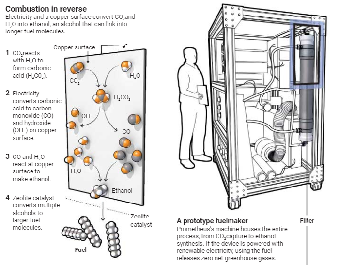 Недавно наткнулся на очень интересный американский проект, суть которого заключается в том, чтобы энергию, получаемую "экологичным" путем (солнечные электростанции и ветряки), использовать для синтеза спиртов и впоследствии бензина. Почти все в развитом мире безнадежно зависимы от него. В совокупности мы используем почти 3 триллиона литров бензина в год. И естественно, уже давно ведутся исследования, направленные на изобретение метода получения этого топлива без использования нефти, так как она не будет добываться вечно. Новый виток в исследованиях был достигнут после изобретения углеродных нанотрубок, которые играют в процессах получения бензина из воды, воздуха и электричества основную роль. Чтобы было понятнее, объясню процесс синтеза очень простым языком: Под воздействием электричества из воды и СО2, содержащегося в воздухе, получаются молекулы этанола, которые могут быть отделены от воды специальным фильтром с нанотрубками. Соответственно можно будет получать чистый этанол не при