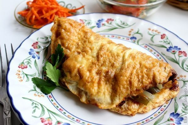 - Второй половинкой яичницы закрываем фарш.
