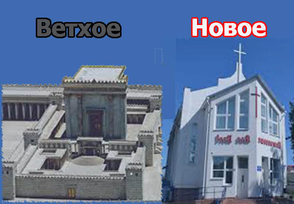 Ветхозаветний Храм имел: внешний двор, внутренний двор, святое и Святое Святых. В Храме приносили жертвы животных. Акцент был на Храме (Здании). В Святое Святых мог входить только первосвященник.